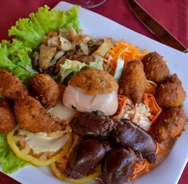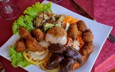 Assiette créole de bienvenue (acras, boudins, samoussas, crudités)