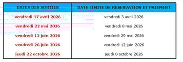 Le solde de la réservation est exigible aux dates indiquées dans le tableau suivant :