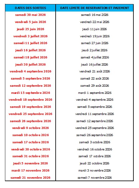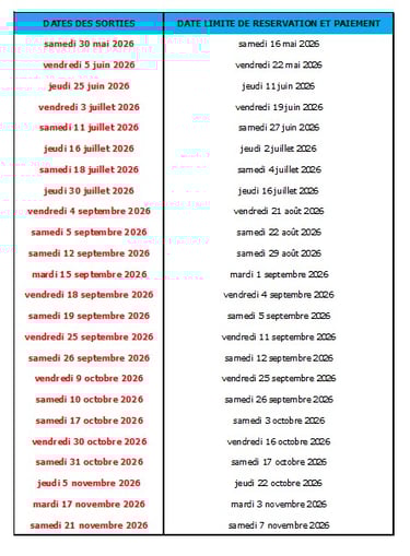 Le solde de la réservation est exigible aux dates indiquées dans le tableau suivant :
