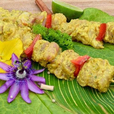 Brochette de poulet sauce curry coco