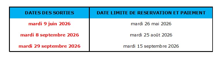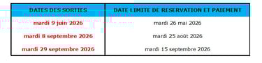 Le solde de la réservation est exigible aux dates indiquées dans le tableau suivant :